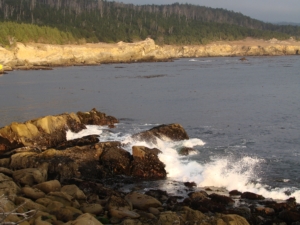 We moved up the highway and stopped at MacKerricher State Park. It was very nice, in that, our campsite was just a block walk to the ocean. There is a long ‘frontage road’ to use and if you walk down far enough to get off the park property you can turn the dog loose on the beach. That Mattie girl, she just loved the beach, almost as much as snow! She just ran and let the water chase her up on the beach and she spun around doing 360’s just happy as could be. This was another nice park.