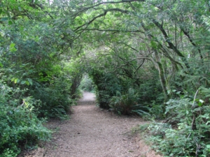 The next park was really large, Patrick’s State Park but the beach was down stairs and then a zig zag path with a sign that said no dogs, so that was a bummer. We walked in the park and there were trails in the woods and also an old Indian village. We met a strange lady from Alaska who appeared to be regular fixture in the park. She told us how poodles were used to run in the Iditarod years ago. They performed great. But the people with actual ‘sled dogs’ weren’t happy about the interlopers.