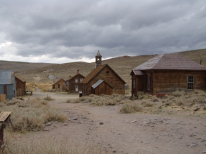 Next we headed east out of the park and actually got into some snow. We were looking forward to seeing the ghost town of Bodie. Bodie is interesting because it is a mostly intact old mining town with about sixty buildings. The buildings are laid out in town fashion and many of them have the original interiors in tact. We enjoyed peeking in the windows to see the pool table in the saloon, dry goods in bins in the General Store, and the old organ in the church. Caretakers live here year round to help protect the town and watch over things. It might be pleasant in the summer but winters can get down to 20 below zero. The day we were there in the fall it was really cold and windy.